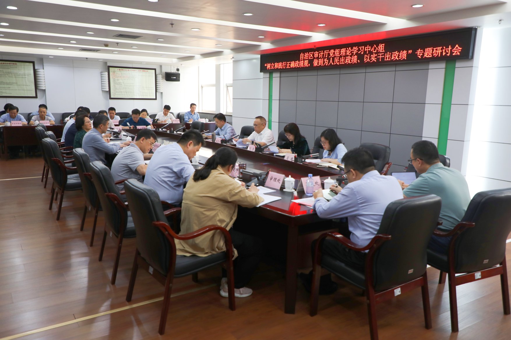 研讨会上,中心组成员高原、梁可志、石璨围绕“树立和践行正确政绩观,做到为人民出政绩、以实干出政绩”专题,分别结合分管领域审计工作作了交流发言。大家一致表示,要坚守“立党为公”政治本色、牢记“为民造福”价值取向,坚持“科学决策”方法路径,落实“真抓实干”实践要求,以有力有效的审计监督推动中央和自治区重大决策部署落到实处。