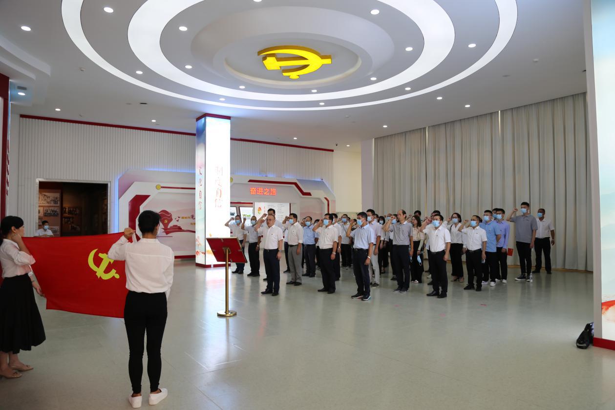图为桂忠才副厅长带领全体党员在中共广西省工委历史博物馆重温入党誓词