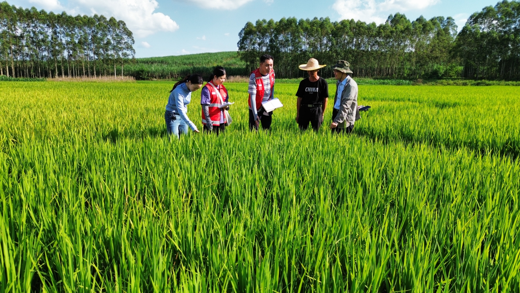 图为自治区审计厅派驻武宣县复旦村工作队查看优质稻种植情况