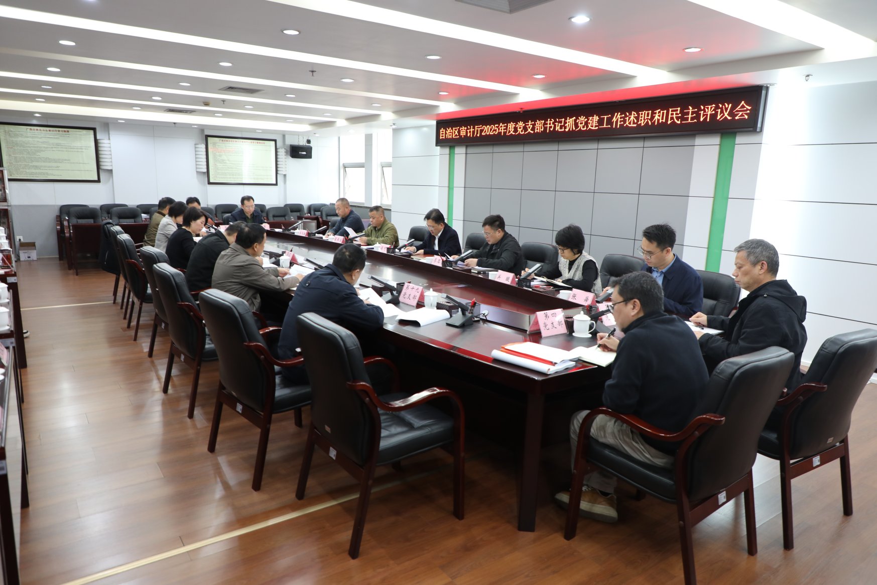 图为自治区审计厅2025年度党支部书记抓党建工作述职和民主评议会现场