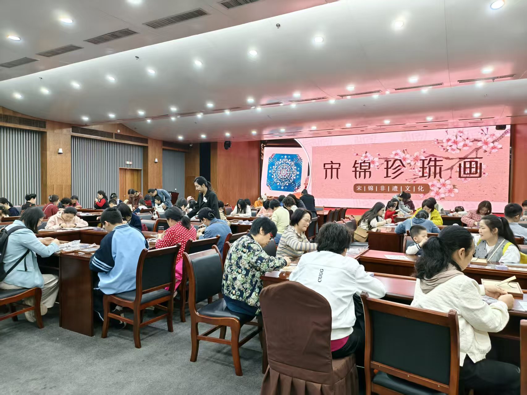 图为自治区审计厅妇女干部职工制作非遗宋锦珍珠画活动现场