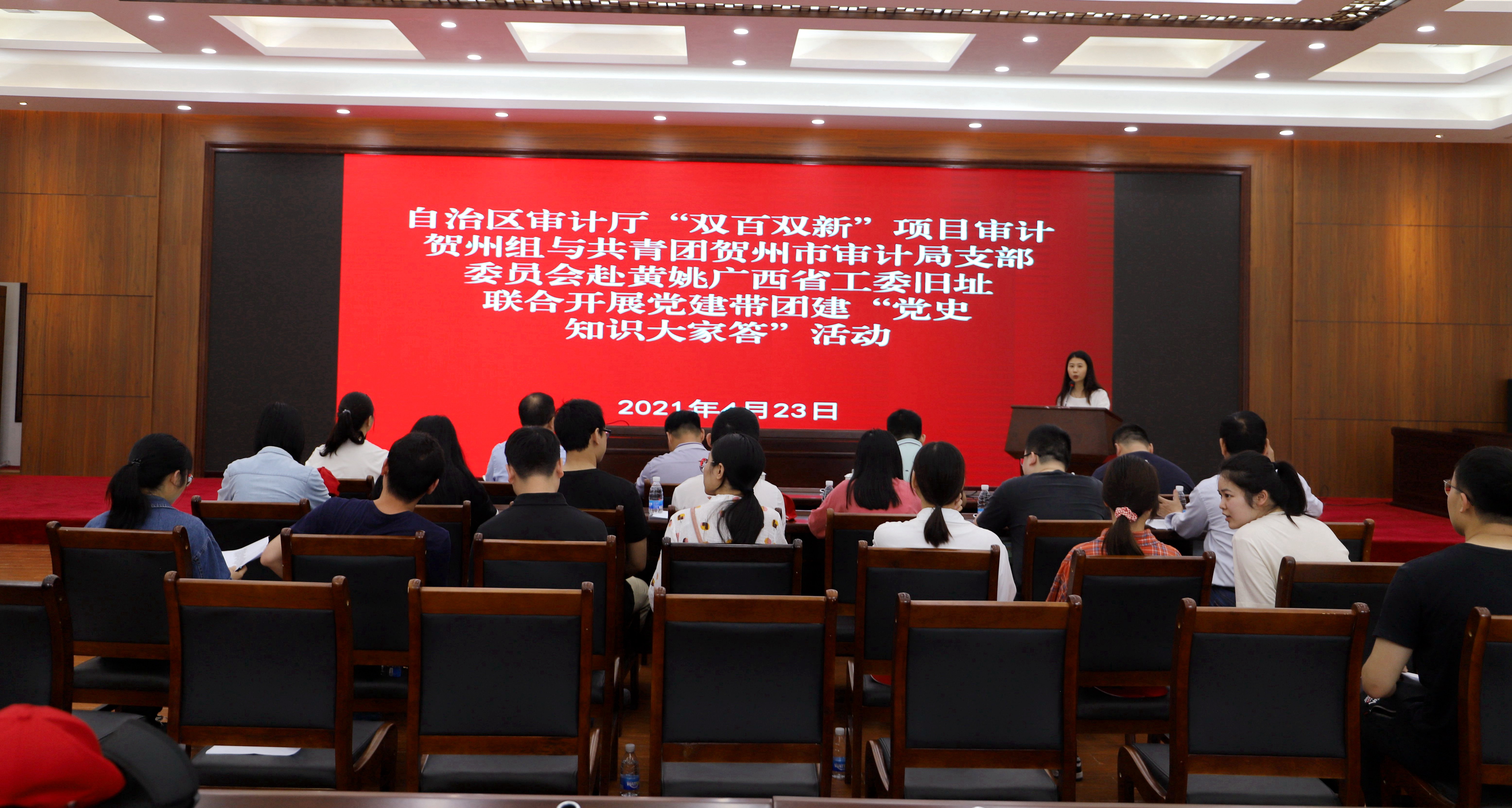 为深入推动党史学习教育,引领审计人员更好地感悟初心使命,提升队伍凝聚力和向心力,2021年4月23日上午,在五四青年节来临之际,自治区审计厅“双百双新”项目审计贺州组与贺州市审计局团支部联合到广西省工委黄姚旧址纪念馆开展了党建带团建“学党史、感党恩、跟党走”主题活动。