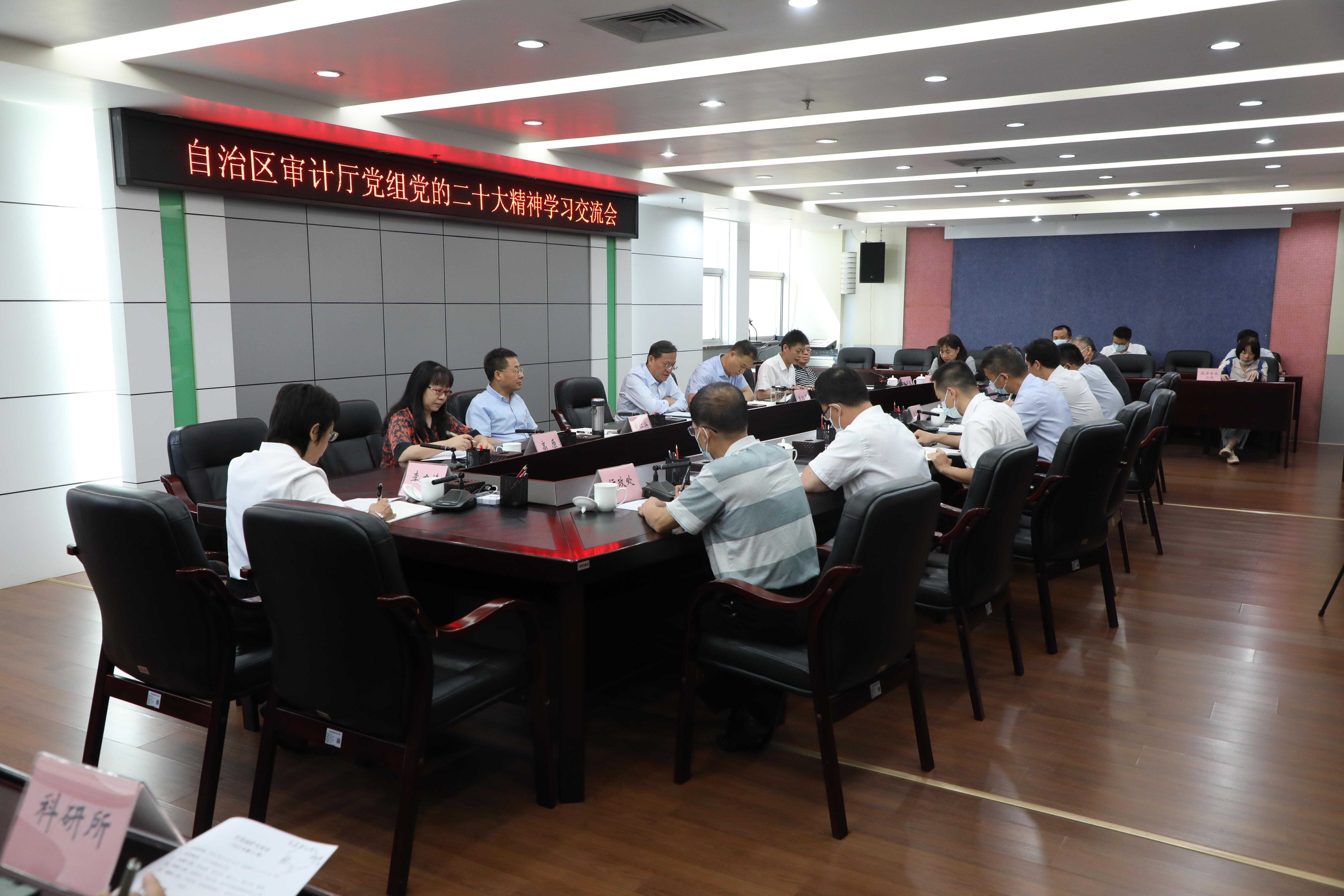 2022年10月16日,在集中收看中国共产党第二十次全国代表大会开幕式直播盛况,聆听习近平总书记代表十九届中央委员会向大会作的报告后,自治区审计厅党组在14楼会议室召开扩大会议,就党的二十大精神进行学习研讨。自治区审计厅党组书记苏海棠主持会议并讲话。
