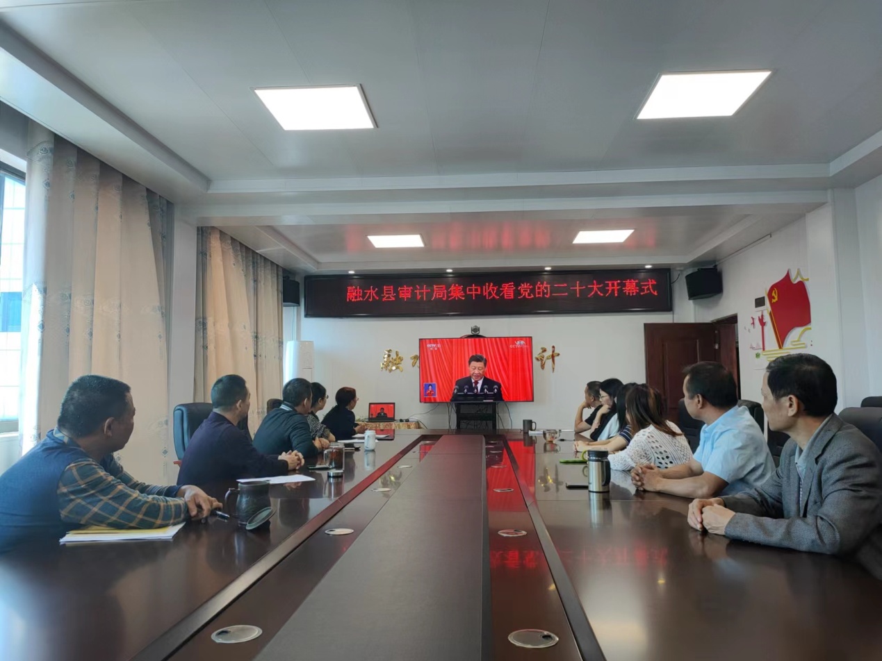 图为融水县审计局党员干部集中收看党的二十大开幕会